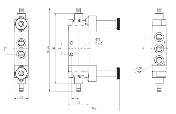 Монтажные размеры1/8 G, 130,26 х 78,9 х 22